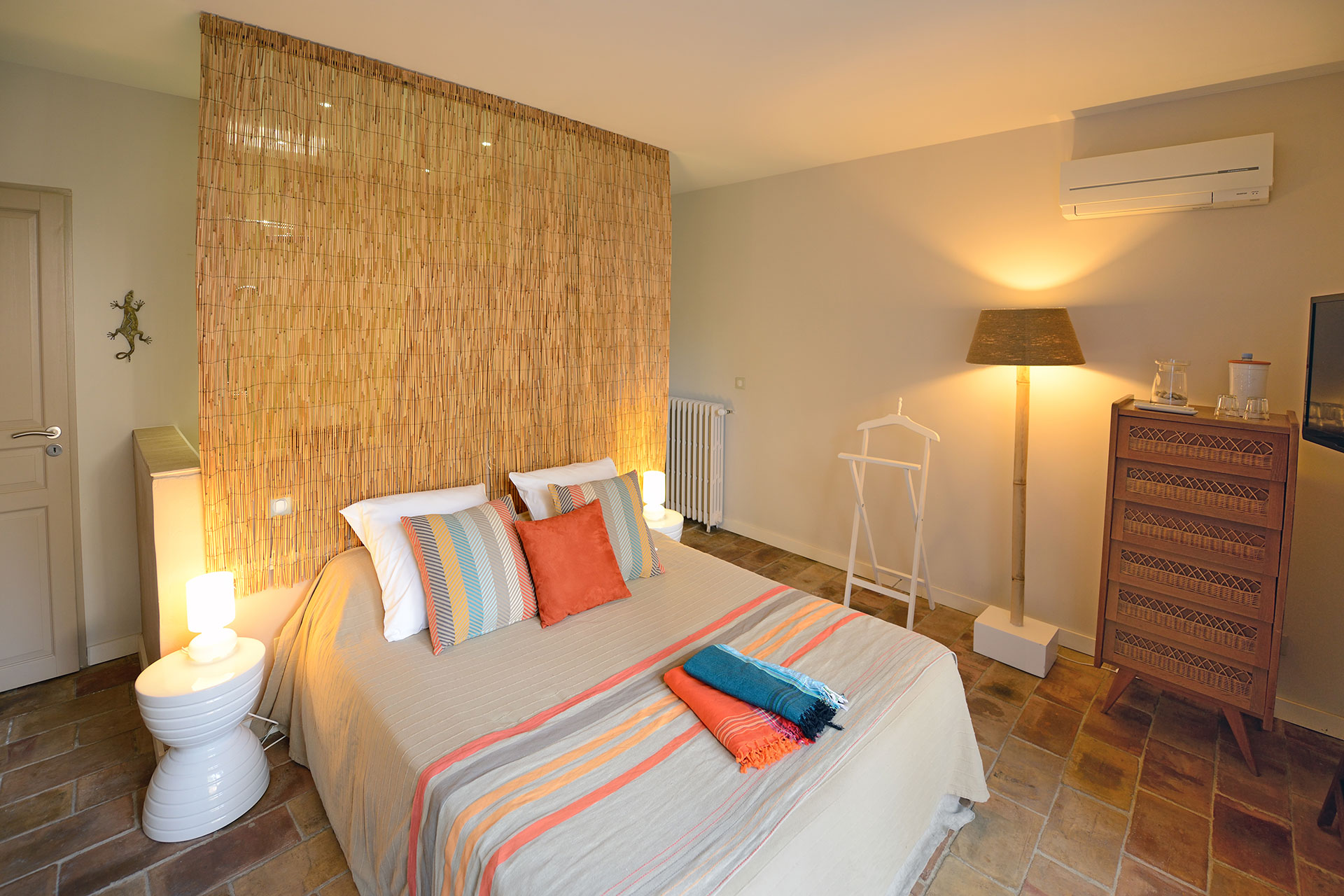 Appréciez l’univers « bord de mer » de cette chambre pour 2 personnes avec son sol en pare feuille et sa décoration naturelle !